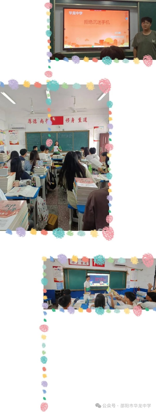 為了響應(yīng)教育部提出的《關(guān)于抓好落實中小學(xué)生五項管理》的號召,切實做好預(yù)防學(xué)生沉迷手機的教育引導(dǎo)工作,有效維護學(xué)生的身心健康和生命安全,全校以班級為單位召開了以“拒絕手機進校園”主題的班會課。